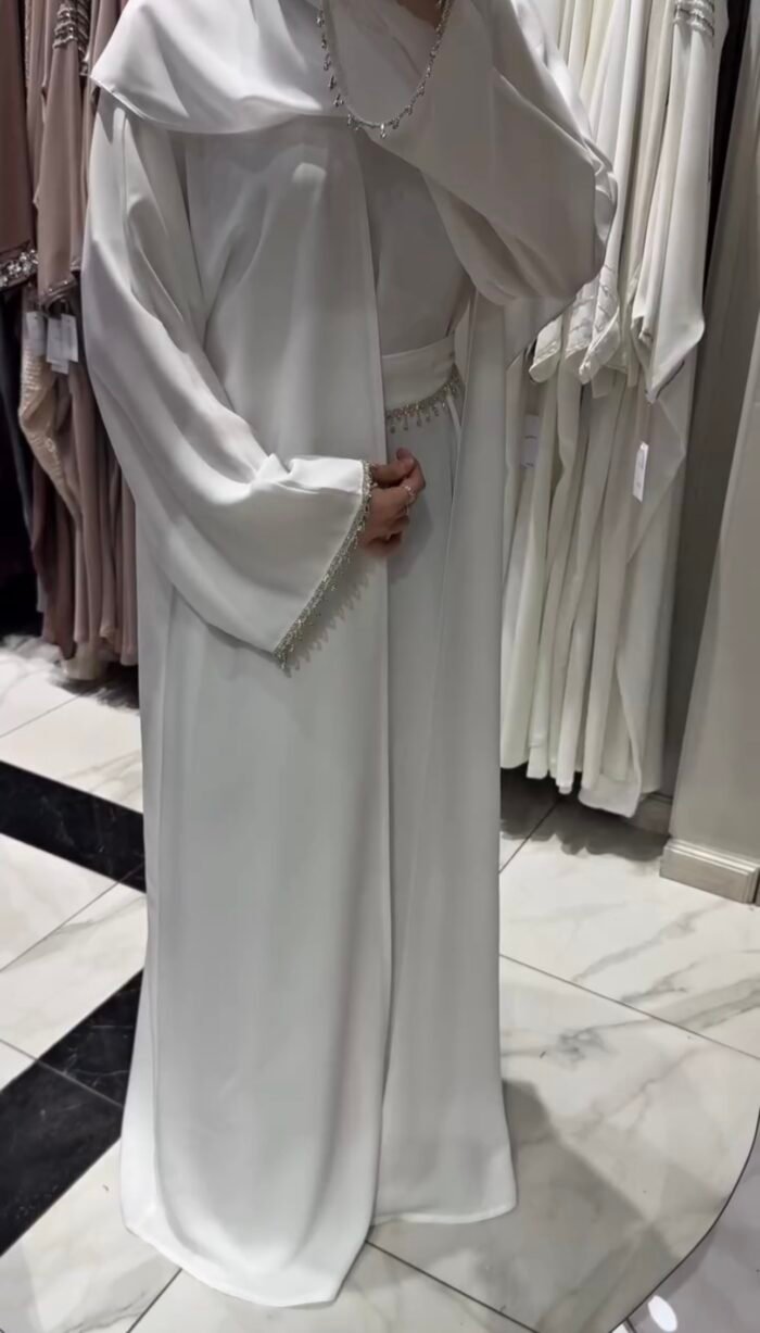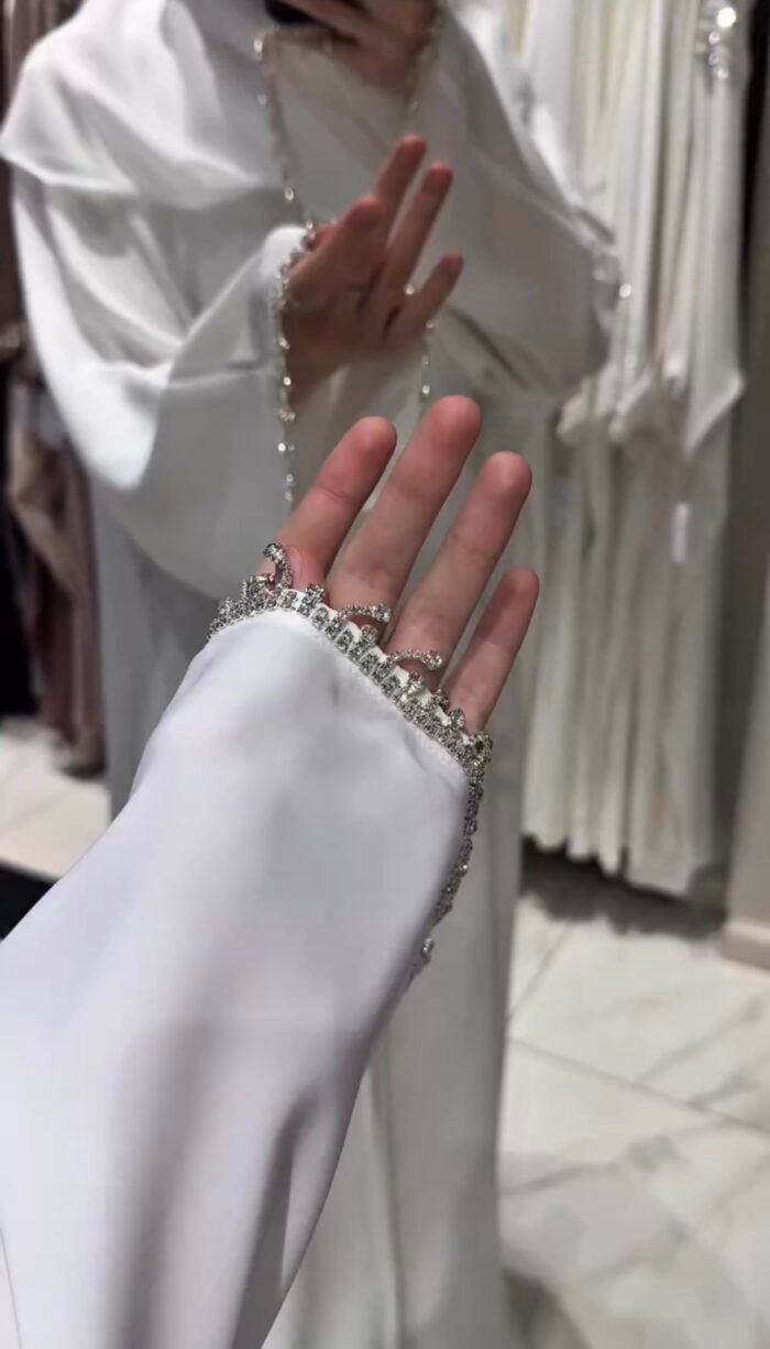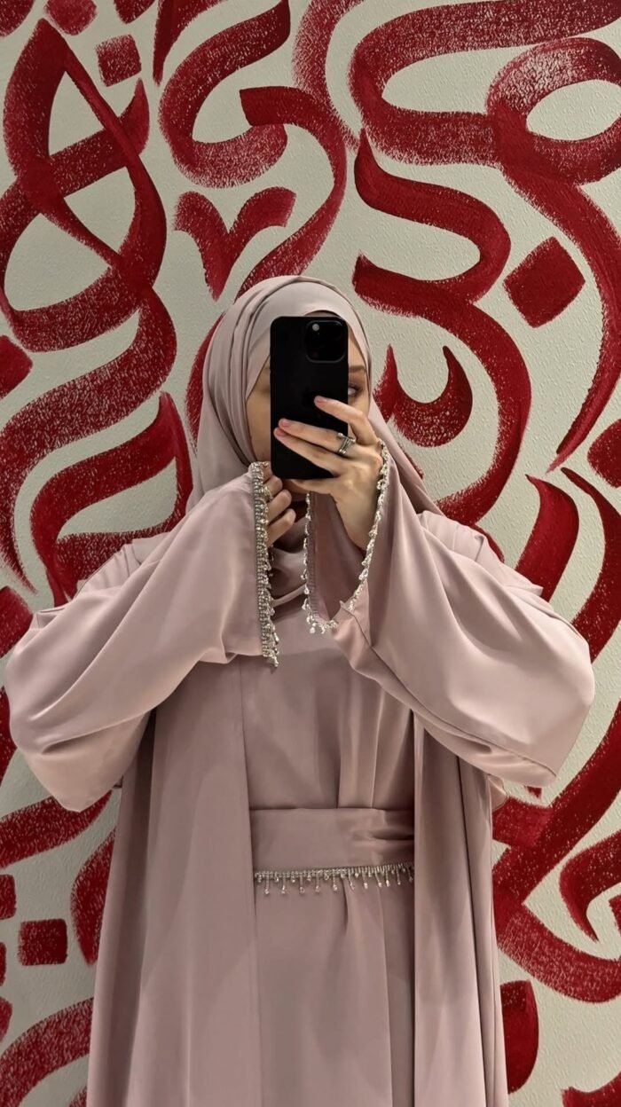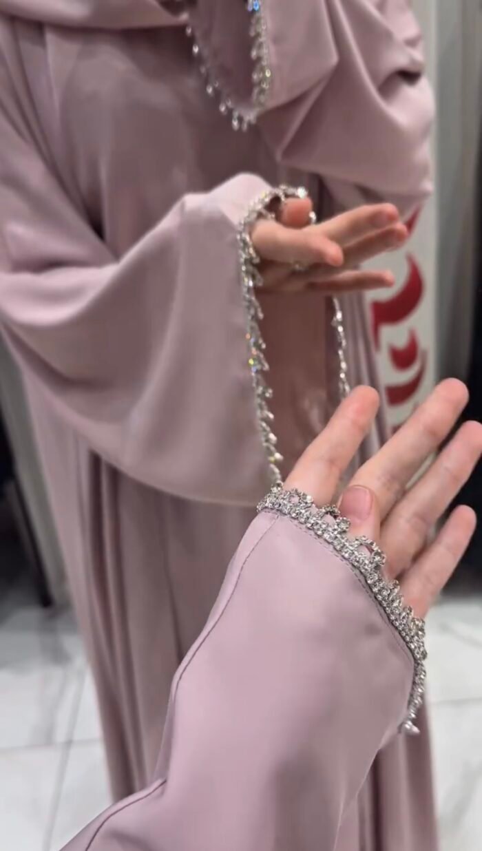 Introducing our latest addition to the modest fashion collection –Crystal Diamond Stone Lace Abaya . Crafted meticulously to blend elegance with modesty, this ensemble is perfect for the modern woman seeking both style and grace. Made from premium Crystal fabric adorned with Diamond Stone Lace, this ensemble boasts unparalleled quality and sophistication.